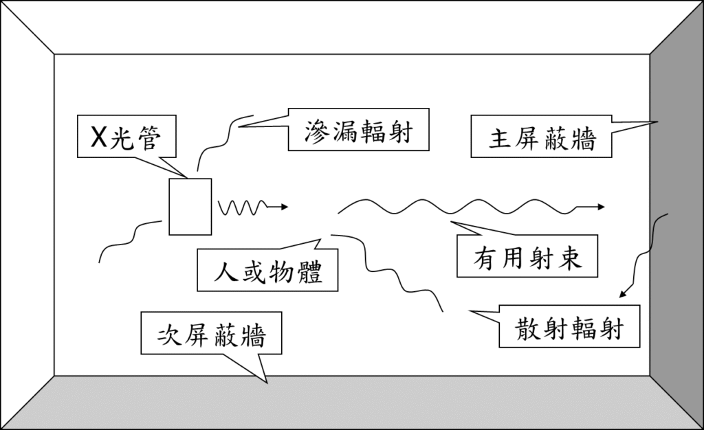 一般如果是專業計算,X光室之輻射防護屏蔽要考慮到三種輻射值即主輻射,滲漏輻射以及散射輻射。最後再查表參考NCRP147。